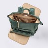 Traveling with baby will be a breeze with the help of this Boxy Diaper Backpack from Cloud Island™. Featuring a spacious zippered main compartment with mesh, slip and side utility pockets, this diaper backpack accommodates everything from diapers and wipes to rash creams and plush toys. It's designed with three outer pockets to easily access frequently-used items, while the side dispenser pockets allows quick retrieval of tissues and wipes. Its adjustable padded shoulder straps plus tote handles and a trolley sleeve allow for multiple comfortable carrying options.
