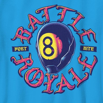 Gear up for victory with this officially licensed boys' Fortnite t-shirt, where the iconic 8-Ball helmet takes center stage within the bold, red "Battle Royale" Old English font. Whether you're dropping into Tilted Towers or showing off your battle-ready style, this shirt’s got you covered. A must-have for any Fortnite fan, it combines classic gaming nostalgia with the fierce energy of your favorite in-game battles. Wear it, and let the fight begin!