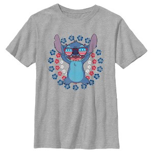 Boy's Lilo & Stitch Patriotic Hibiscus Circles T-Shirt - 1 of 4