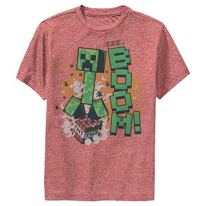 Boy's Minecraft Creeper Boom Performance Tee - Red Heather - Small