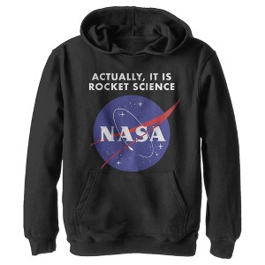 If you're all about that space then you're going to love the NASA Rocket Science Logo Boys' Pullover Hoodie! A lightly distressed print on the front of this awesome NASA pullover hoodie reads "Actually, it is Rocket Science" above the NASA logo.