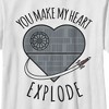 • Strut your stuff with this stylish new Valentine's Day boys' t-shirt that is perfect for your sweet valentine! Featuring the Death Star in the shape of a heart with the phrase: "You Make My Heart Explode."