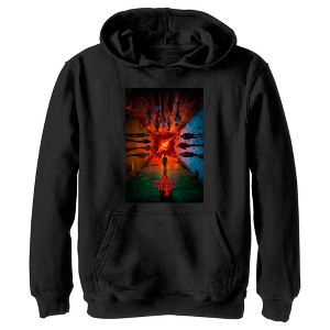 Turn your world upside down with this officially licensed Stranger Things Season 4 Boys' Graphic Hoodie! Your favorite 1980s-inspired Netflix television series is taking you back to Hawkins, Indiana to fight the evil creature, Vecna, who is terrorizing Max and other traumatized members of the town! Blast your favorite song and wear this awesome sweatshirt to fight the curse of Vecna today. This boys' sweatshirt features a promotional poster for the show's 4th season with characters such as Dustin, Eleven, Hopper, Joyce, Max Mike, Nancy, Lucas, Steve, Will, and more heading to their newest adventure!