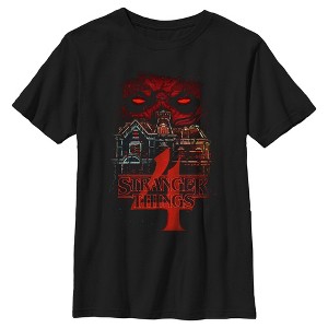 Turn your world upside down with this officially licensed Stranger Things Season 4 Boys' Graphic T-Shirt! Your favorite 1980s-inspired Netflix television series is taking you back to Hawkins, Indiana to fight the evil creature, Vecna, who is terrorizing Max and other traumatized members of the town! Blast your favorite song and wear this awesome tee to fight the curse of Vecna today. This boys' tee features Vecna's eyes glaring at the Creel household with the tv series logo printed below!