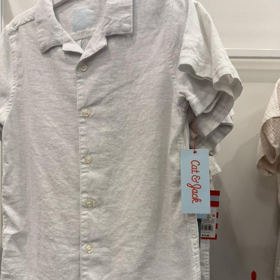 Your kid will look smart and feel their absolute best in this Short-Sleeve Button-Down Shirt from Cat & Jack™. The short-sleeve shirt is made of soft linen-rayon blend broadcloth fabric to let them breeze through the day in comfort. The collared neckline with button-down front for ease of wear, while the simple design is easy to pair with a variety of pants.