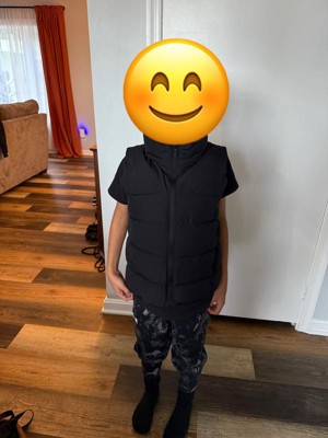 Well made puffer vest Boys' Puffer Vest - All In Motion™ Black I love everything about this lil guy best. It will be so nice, very well made and warm and cozy on the cool days of fall. My little grandson love it he’s 5.