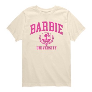 Barbie - Barbie University - Youth Boys Short Sleeve Graphic T-Shirt - Step into the glamorous pink world of Barbie with our officially licensed graphic garments for the fashion-forward! Whether you dream of being a fashion designer, a mermaid princess, or a world-traveling explorer, our garments bring Barbie's world to life with vibrant colors and playful prints. Crafted with quality materials and attention to detail, each piece ensures comfort and durability for all-day play. Express your unique sense of style and imagination with our exclusive Barbie graphic apparel!