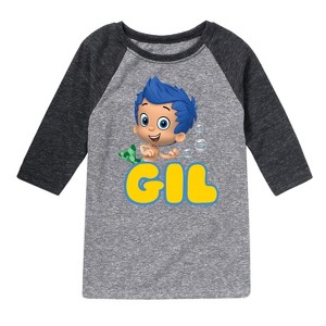 Bubble Guppies - Gil - Toddler And Youth Raglan Graphic T-Shirt - Dive into exciting undersea adventures with Bubble Guppies graphic apparel! Featuring colorful designs of beloved characters like Molly, Gil, Goby, Deema, and Bubble Puppy, each piece captures the fun, music, and educational magic of Bubbletucky. Perfect for young fans and playful wardrobes, this collection brings the show's upbeat spirit, catchy songs, and vibrant underwater world to life in every wear.