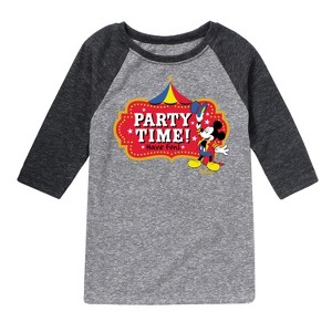 Disney - Birthday - Ring Master Mickey, Party Time Have Fun - Toddler & Youth Raglan Graphic T-Shirt - Add a touch of magic to your wardrobe with this graphic apparel featuring iconic Disney designs. Showcasing beloved characters and classic imagery, each piece combines nostalgic charm with modern style—perfect for Disney fans of all ages. Whether you're headed to the parks or just adding whimsy to your everyday look, these graphics bring the magic to life.