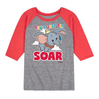 Disney - Dumbo - Large Flying Ears - Toddler & Youth Raglan Graphic T-Shirt - Add a touch of magic to your wardrobe with this graphic apparel featuring iconic Disney designs. Showcasing beloved characters and classic imagery, each piece combines nostalgic charm with modern style—perfect for Disney fans of all ages. Whether you're headed to the parks or just adding whimsy to your everyday look, these graphics bring the magic to life.