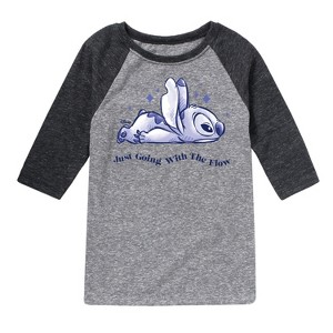 Disney - Lilo & Stitch - Go With The Flow - Toddler & Youth Raglan Graphic T-Shirt - Add a touch of magic to your wardrobe with this graphic apparel featuring iconic Disney designs. Showcasing beloved characters and classic imagery, each piece combines nostalgic charm with modern style—perfect for Disney fans of all ages. Whether you're headed to the parks or just adding whimsy to your everyday look, these graphics bring the magic to life.