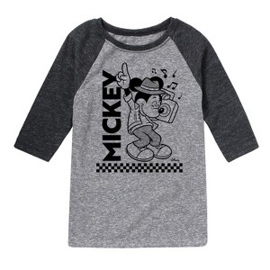 Disney - Mickey & Friends - Mickey Enjoys Music on Boombox - Toddler And Youth Raglan Graphic T-Shirt - Add a touch of magic to your wardrobe with this graphic apparel featuring iconic Disney designs. Showcasing beloved characters and classic imagery, each piece combines nostalgic charm with modern style—perfect for Disney fans of all ages. Whether you're headed to the parks or just adding whimsy to your everyday look, these graphics bring the magic to life.