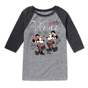 Disney - Mickey & Friends - Mickey & Minnie - Venice - Toddler And Youth Raglan Graphic T-Shirt - Add a touch of magic to your wardrobe with this graphic apparel featuring iconic Disney designs. Showcasing beloved characters and classic imagery, each piece combines nostalgic charm with modern style—perfect for Disney fans of all ages. Whether you're headed to the parks or just adding whimsy to your everyday look, these graphics bring the magic to life.