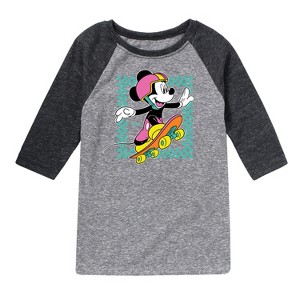 Disney - Mickey & Friends - Skater Out the Box - Toddler And Youth Raglan Graphic T-Shirt - Add a touch of magic to your wardrobe with this graphic apparel featuring iconic Disney designs. Showcasing beloved characters and classic imagery, each piece combines nostalgic charm with modern style—perfect for Disney fans of all ages. Whether you're headed to the parks or just adding whimsy to your everyday look, these graphics bring the magic to life.