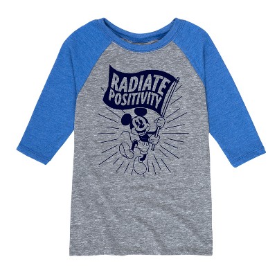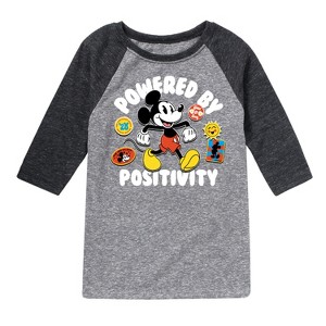 Mickey & Friends - Powered By Positivity - Toddler And Youth Raglan Graphic T-Shirt - Add a touch of magic to your wardrobe with this graphic apparel featuring iconic Disney designs. Showcasing beloved characters and classic imagery, each piece combines nostalgic charm with modern style—perfect for Disney fans of all ages. Whether you're headed to the parks or just adding whimsy to your everyday look, these graphics bring the magic to life.