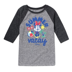 Mickey & Friends - Summer Vacay - Toddler And Youth Raglan Graphic T-Shirt - Add a touch of magic to your wardrobe with this graphic apparel featuring iconic Disney designs. Showcasing beloved characters and classic imagery, each piece combines nostalgic charm with modern style—perfect for Disney fans of all ages. Whether you're headed to the parks or just adding whimsy to your everyday look, these graphics bring the magic to life.