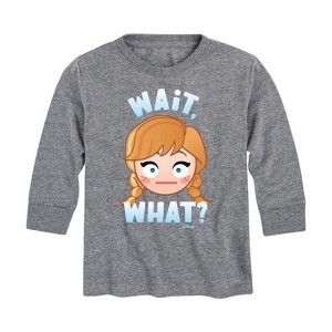 Disney Emoji - Wait What Anna - Toddler And Youth Long Sleeve Graphic T-Shirt - Add a touch of magic to your wardrobe with this graphic apparel featuring iconic Disney designs. Showcasing beloved characters and classic imagery, each piece combines nostalgic charm with modern style—perfect for Disney fans of all ages. Whether you're headed to the parks or just adding whimsy to your everyday look, these graphics bring the magic to life.