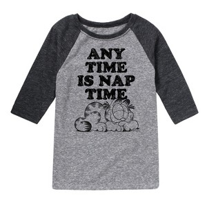 Garfield - Nap Sketch - Toddler & Youth Raglan Graphic T-Shirt - Bring the humor and laziness of the famous orange cat to your wardrobe with Garfield graphic apparel. Featuring Garfield, Odie, and Jon, these designs celebrate the iconic comic strip and its beloved characters.