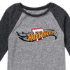 Hot Wheels - Halloween - Logo Bitten With Fangs - Toddler & Youth Raglan Graphic T-Shirt - Speed into bold style with Hot Wheels graphic apparel, featuring high-octane designs that showcase legendary cars like the Twin Mill, Bone Shaker, and other fan favorites. Each piece captures the adrenaline-pumping excitement of epic tracks, jaw-dropping stunts, and non-stop racing action. Perfect for fans of all ages who grew up launching cars off orange tracks and collecting miniature speed machines, this collection brings the thrill of Hot Wheels to your everyday look with energy, nostalgia, and unmistakable style.