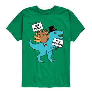 Instant Message - Eat Pizza Turkey Dino - Toddler & Youth Short Sleeve Graphic T-Shirt - Instant Message is an online specialty fashion retailer for everything from funny to inspiring printed apparel. We offer a range of garments from long sleeve and relaxed fit t-shirts, to lightweight french-terry long sleeve shirts, hoodies and graphic print pullovers. Our products feature fun and trendy graphics that are perfect for any occasion and also make great gifts.
