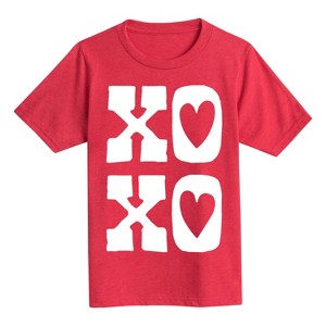 Boys' - Instant Message - XOXO Stacked Hearts, White Short Sleeve Graphic T-Shirt - 1 of 4