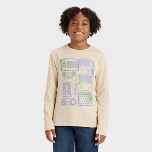 Boys' Long Sleeve Vintage Gaming Graphic T-Shirt - Cat & Jack™ Khaki - 1 of 4