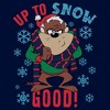 - Prepare for the present of your dreams with this awesome boys' t-shirt that is perfect for the Christmas season! Featuring Taz surrounded by snowflakes and the phrase "Up To Snow Good!" printed across the front.
