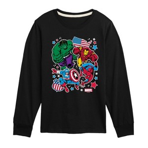 Boys' - Marvel - Avengers America Stickers Style Long Sleeve Graphic T-Shirt - 1 of 3