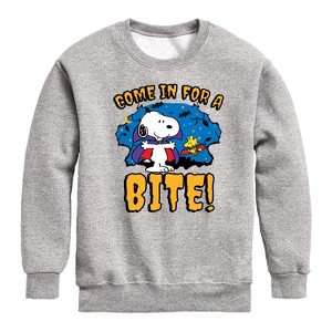 Boys' - Peanuts - Snoopy Come In For A Bite Graphic Long Sleeve Fleece Sweatshirt - 1 of 4