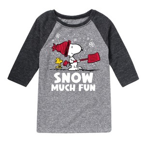 Peanuts - Snoopy and Woodstock Snow Much Fun - Toddler And Youth Raglan Graphic T-Shirt - From the best-loved comic strip in history comes officially licensed PEANUTS apparel for fans everywhere. Show your love for Charlie Brown, Snoopy, Woodstock, Lucy, Linus, Pigpen and the whole gang. Copyright Peanuts.