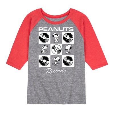 Peanuts - Records Snoopy Vinyl - Toddler & Youth Raglan Graphic T-Shirt - From the best-loved comic strip in history comes officially licensed PEANUTS apparel for fans everywhere. Show your love for Charlie Brown, Snoopy, Woodstock, Lucy, Linus, Pigpen and the whole gang. Copyright Peanuts.