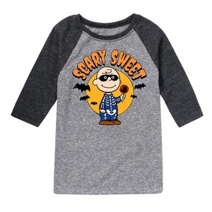 Peanuts - Scary Sweet - Toddler & Youth Raglan Graphic T-Shirt - From the best-loved comic strip in history comes officially licensed PEANUTS apparel for fans everywhere. Show your love for Charlie Brown, Snoopy, Woodstock, Lucy, Linus, Pigpen and the whole gang. Copyright Peanuts.