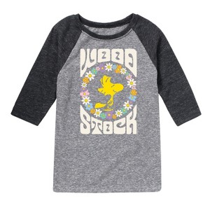 Peanuts - Retro Floral Woodstock - Toddler & Youth Raglan Graphic T-Shirt - From the best-loved comic strip in history comes officially licensed PEANUTS apparel for fans everywhere. Show your love for Charlie Brown, Snoopy, Woodstock, Lucy, Linus, Pigpen and the whole gang. Copyright Peanuts.