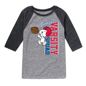 Peanuts - Varsity Snoopy Squad - Toddler And Youth Raglan Graphic T-Shirt - From the best-loved comic strip in history comes officially licensed PEANUTS apparel for fans everywhere. Show your love for Charlie Brown, Snoopy, Woodstock, Lucy, Linus, Pigpen and the whole gang. Copyright Peanuts.