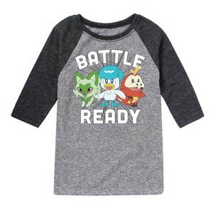 Pokémon - Battle Ready - Youth Raglan Graphic T-Shirt - Celebrate the essence of Pokemon's Pokémon with officially licensed apparel featuring unique designs crafted exclusively by Hybrid Apparel. Each piece brings beloved characters, iconic imagery, and memorable moments to life, offering Pokémon fans a one-of-a-kind way to showcase their passion.