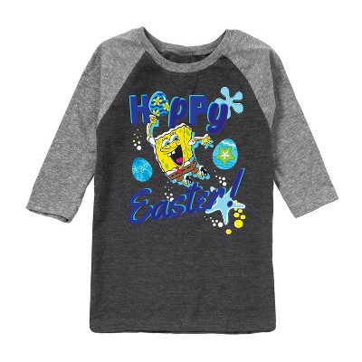 SpongeBob Squarepants - Hoppy Easter - Toddler And Youth Raglan Graphic T-Shirt - Dive into the fun of Bikini Bottom with SpongeBob SquarePants graphic apparel! Featuring colorful designs of SpongeBob, Patrick, Squidward, Sandy, and more, this collection brings the show's quirky humor and unforgettable moments to life. Perfect for fans of all ages, these pieces add a splash of personality to any wardrobe.