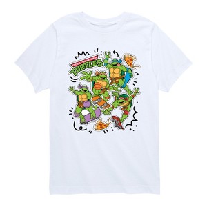 Teenage Mutant Ninja Turtles - Tmnt Skate Stickers - Youth Boys Short Sleeve Graphic T-Shirt - Unleash your inner hero with Teenage Mutant Ninja Turtles graphic apparel, featuring bold and colorful designs of the iconic heroes in a half shell—Leonardo, Donatello, Raphael, and Michelangelo. Perfect for fans of all ages, this collection celebrates the action-packed adventures, brotherhood, and fun-loving spirit of these legendary sewer-dwelling ninjas.