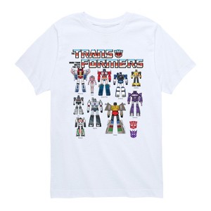 Transformers - Transformers Grid - Youth Boys Short Sleeve Graphic T-Shirt - Celebrate the essence of Hasbro's Transformers with officially licensed apparel featuring unique designs crafted exclusively by Hybrid Apparel. Each piece brings beloved characters, iconic imagery, and memorable moments to life, offering Transformers fans a one-of-a-kind way to showcase their passion.