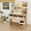 - The vanity desk is equipped with high-quality lights that offer 3 color modes and adjustable brightness, allowing you to create the perfect lighting for your makeup routine, whether it's day or night.