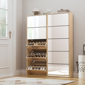Brafabhome Mirror Shoe Cabinet with 5 Flip Doors, 30-Pairs Shoe Organizer Cabinet for Hallway, Modern Entryway Shoe Storage for Slippers Sneakers
