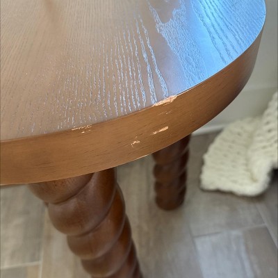 I love this table and would have given it five stars but it’s banged up and scratched. I ordered this for car side pickup. When it was delivered to my car it was laying on its side in a metal shopping cart with other items that were not my orders. When it was coming out I noticed it was rolling around in the bottom basket. Then the Target employees stopped at another car first and grabbed bags from the basket making the table move around. I didn’t think anything of it or even inspect the table until I was taking it out of my car. I know the scratches didn’t happened in my car because I wrapped it in a moving blanket.