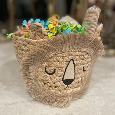 Store all of their nursery essentials with this Braided Water Hyacinth Forest Animal Small Round Storage Decorative Basket from cloud island™. This round storage basket brings practical organization to your baby's nursery or child's playroom decor. It features a braided-textured water hyacinth construction that's detailed with a lion face for a playful safari-themed look. This storage basket is great for stowing baby clothes, wipes, diapers, bath items and more. Plus, it can be spot cleaned for easy care.