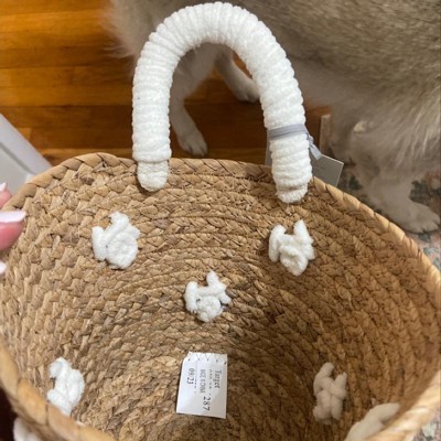 Update your newborn's nursery decor with this Braided Water Hyacinth with Tufted Embroidery Small Round Storage Basket from cloud island™. This round storage bin features a braided water hyacinth construction that's detailed with cream tufted embroidery for sweet textured flair. Designed with attached handles for easy portability, this storage basket is great for stowing small toys, baby blankets, diapers and bath essentials, and is easy to spot clean.