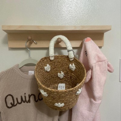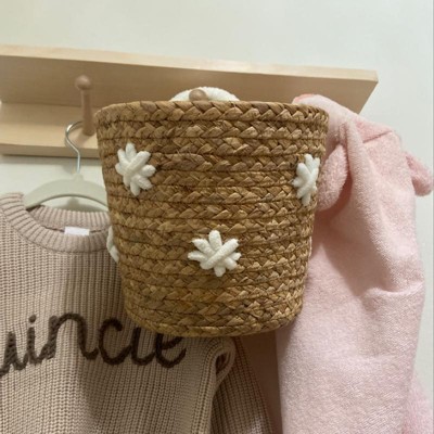 Braided Water Hyacinth with Tufted Embroidery Small Round Storage Basket - Cloud Island™