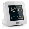 This Braun digital alarm clock features a negative LCD display that can be set to either 12 or 24 hour mode.
