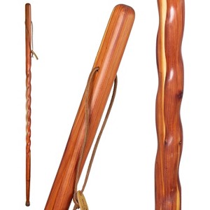 Handcrafted walking stick made from smooth, straight-grained aromatic cedar for natural durability.