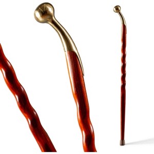 This handcrafted walking cane features a brass-plated hame-top handle for a secure and comfortable grip. Made from cocobolo, a richly colored hardwood, the cane showcases deep reddish-brown tones and distinctive grain patterns. The shaft includes the signature Brazos twist, adding both style and character. A rubber tip provides traction for everyday walking. This cane is ideal for guests who want a reliable mobility aid with classic handcrafted detail and natural wood beauty.