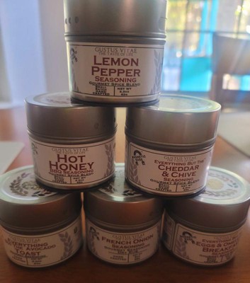- Lemon Pepper Seasoning: Sea Salt, Garlic, Onion, Black Pepper, Lemon Zest, Thyme, Oregano, Rosemary, Marjoram.