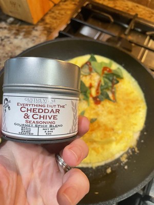 - Everything But The Cheddar & Chive Seasoning: Sea Salt, Onion, Sugar, Dill Tips, Chives, Garlic, Basil, Chervil, Tarragon, White Pepper, Parsley, Cheddar Cheese (Milk, Salt, Cultures & Enzymes, Whey, Buttermilk, Citric acid), Black Pepper.