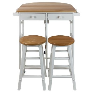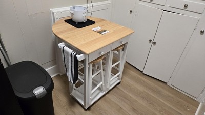 Breakfast Cart with Drop Leaf Table & Stool Set - White - Flora Home: Solid Wood, Lockable Wheels, Towel Bars